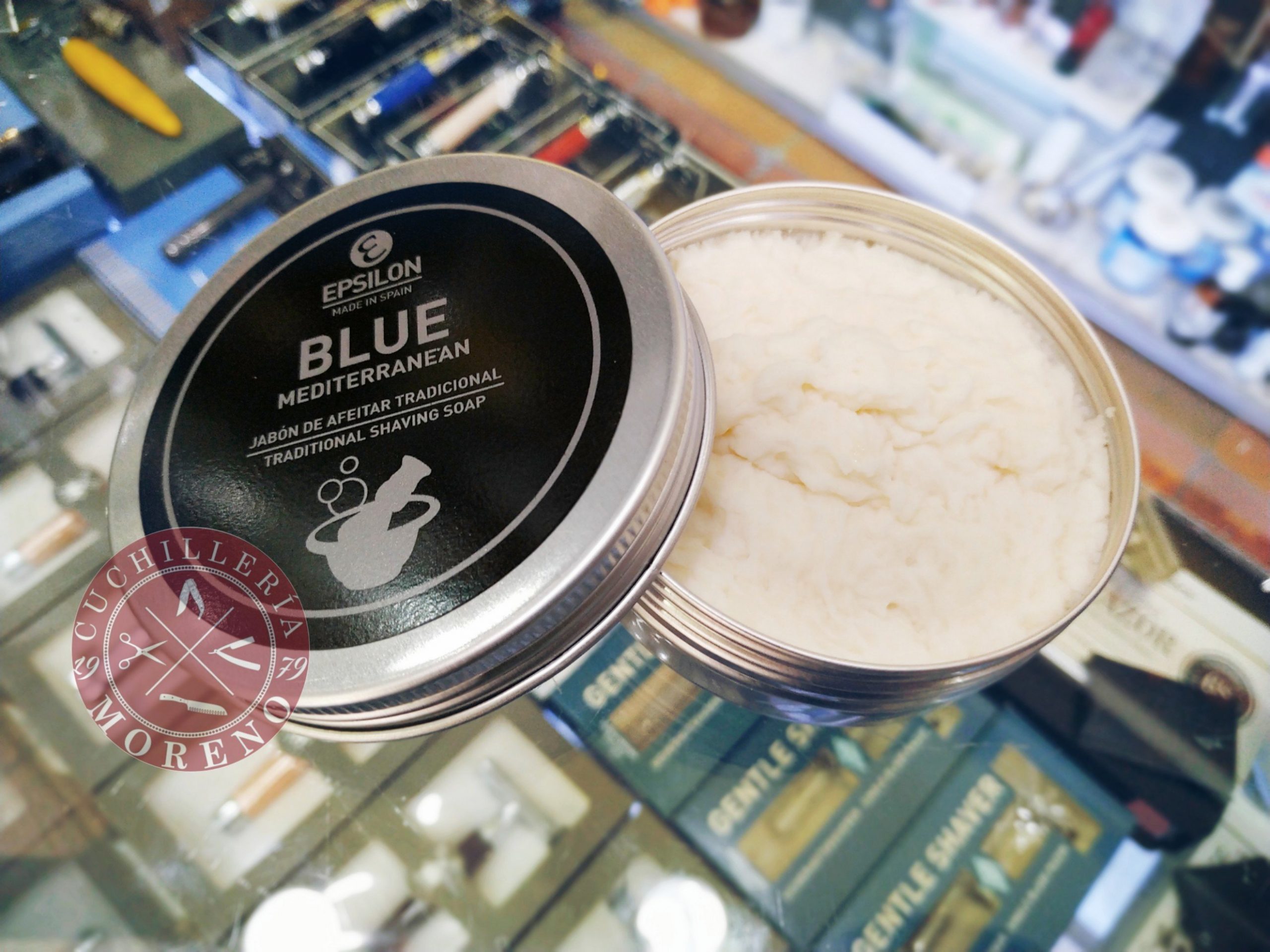 El jabón de afeitar Épsilon Blue Mediterranean lo tenéis disponibles en nuestra cuchillería de Ciudad Real en Avenida Alfonso X el Sabio 10 y en la tienda online www.cuchilleriamoreno.com