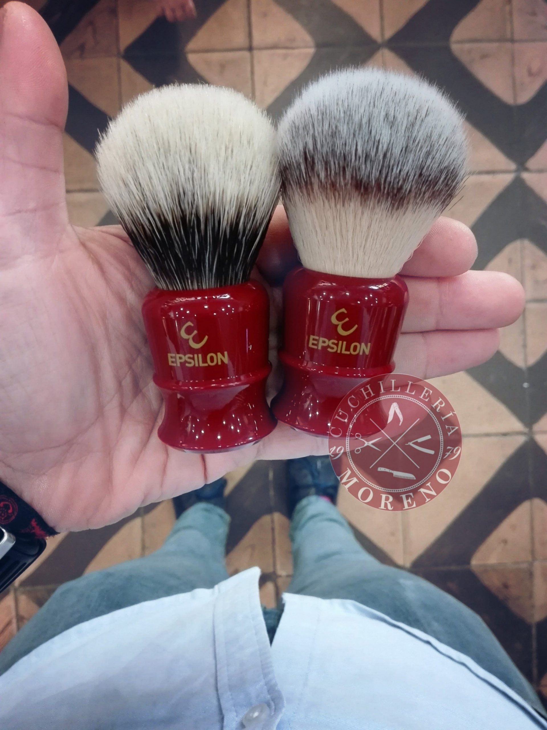 La familia Épsilon la completa unas excelentes brochas de afeitar de pelo natural y sintéticas