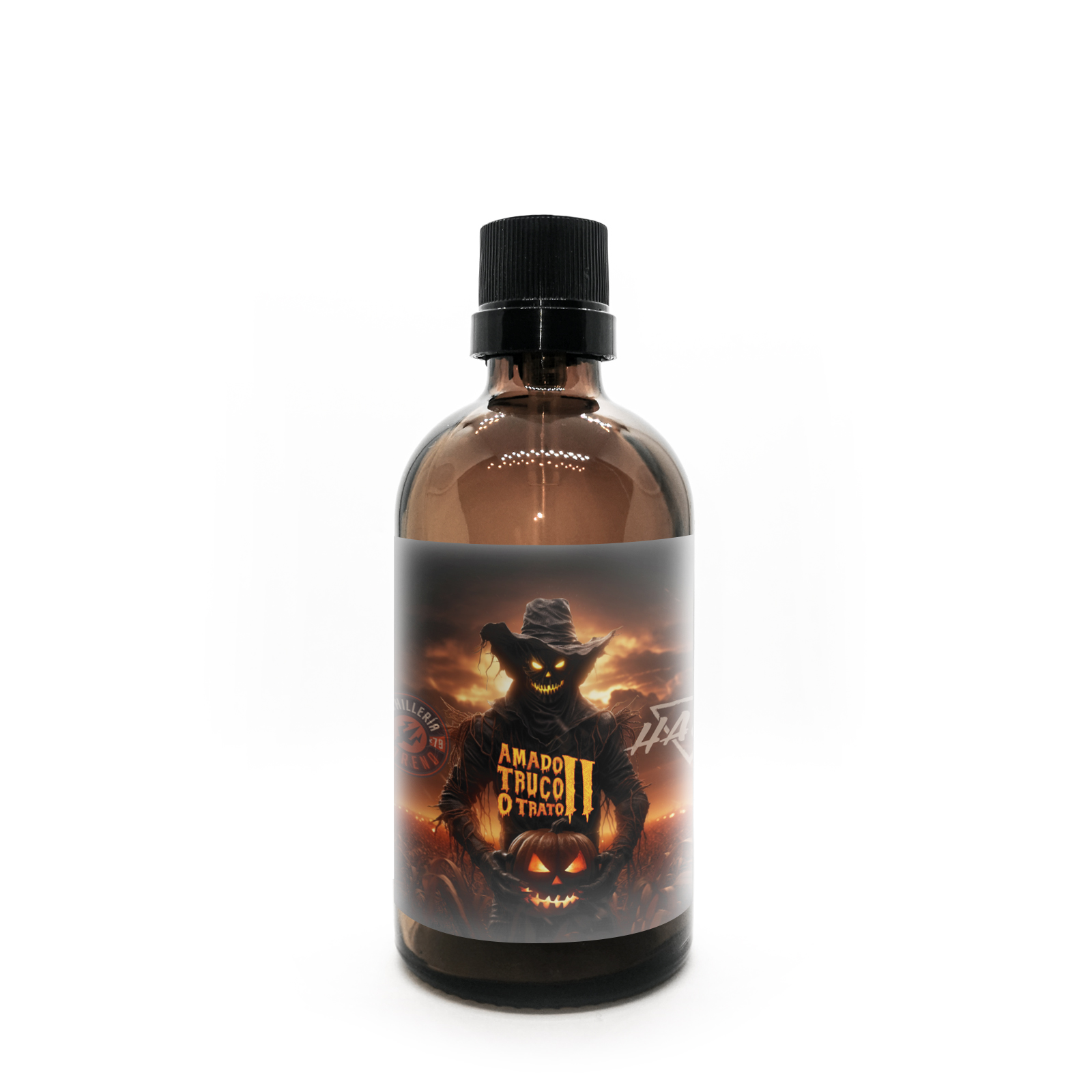 El After Shave Loción AMADO TRUCO O TRATO II HAGS es más que un simple producto de aseo; es una inmersión en un mundo olfativo enigmático y oscuro, inspirado en clásicos del terror como “La masacre de la motosierra de Texas” y “Pesadilla en Elm Street”. Esta loción combina de manera magistral aromas de café, calabaza, lavanda, ron, rosa, canela y madera de oud, creando una experiencia que perdura en la memoria.