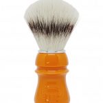 El elegante mango de resina Butterscotch, con un acabado brillante, le da un toque de distinción a esta brocha. Su altura total de 114 mm la hace cómoda de sostener y manipular durante el afeitado.