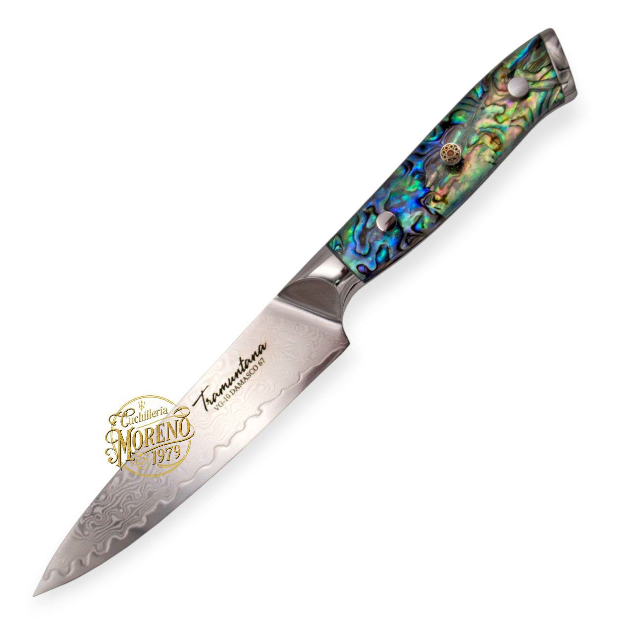 Cuchillo Cocina Utilitario TRAMUNTANA Damasco VG10 Concha Abulón Resina CD12