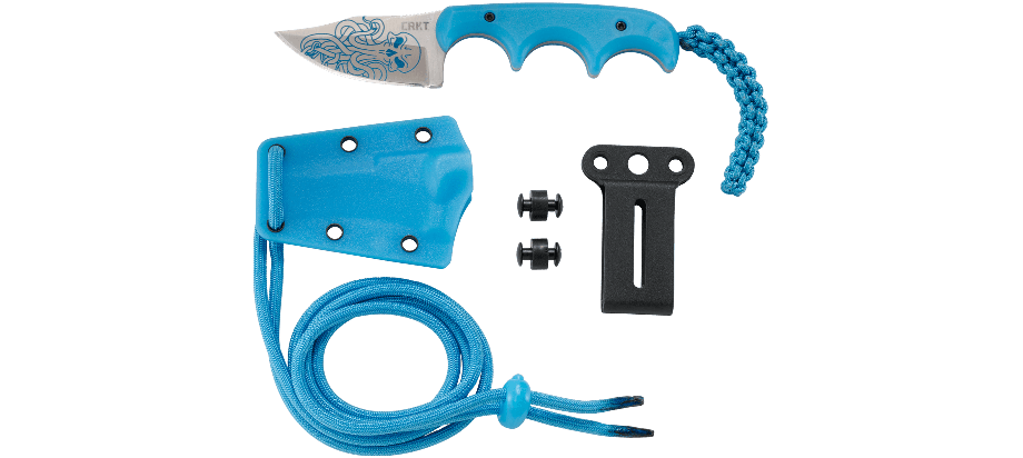 Este cuchillo de cuello de hoja fija compacta con mangos resistentes está recién decorada con un diseño impreso en 3D que brilla en la oscuridad y que despertará conversaciones sobre fogatas. En el bosque o en el garaje, se siente igualmente como en casa.