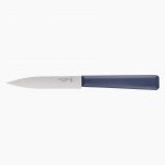 El Opinel Essentiels + Azul es un cuchillo mondador tipo puntilla con una hoja de acero inoxidable de 10 cm y filo liso, perfecto para cortes precisos. Su mango ergonómico de polímero es resistente a humedad, calor y productos químicos, y se puede lavar en el lavavajillas. Es ideal para pelar y trabajar con frutas y verduras, y aporta un toque moderno con su color azul vibrante.