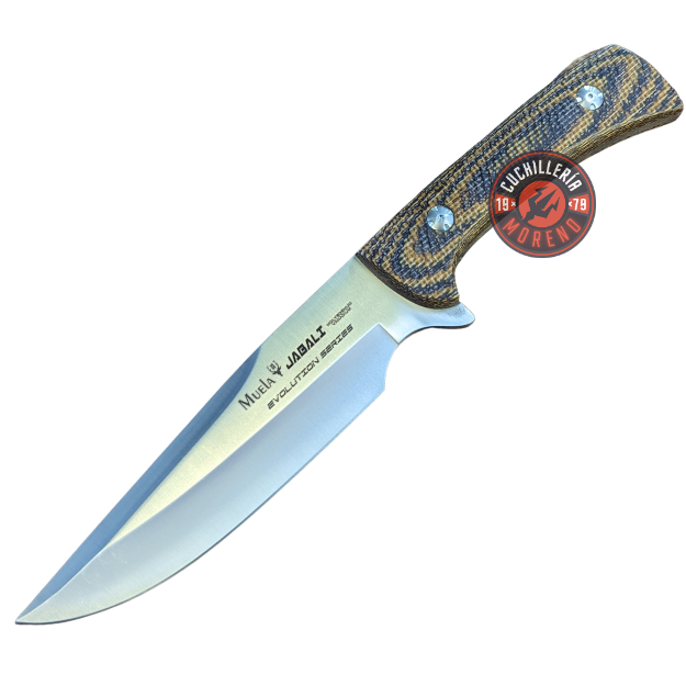 El Jabalí 17G, perteneciente a la distinguida serie EVOLUTION SERIES, redefine el estándar de los cuchillos de alta calidad. Con un elegante diseño, este cuchillo presenta cachas en micarta yute de tonalidad mostaza-marrón, meticulosamente texturizadas a través de CNC para proporcionar un agarre superior. Además, los remaches de acero inoxidable AISI-304 añaden un toque distintivo y robusto.