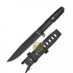 Este cuchillo viene con una funda rígida táctica negra, diseñada para transportar de forma segura en el cinturón o en equipos de exploración. Incluye sistema de fijación y ranuras para adaptarlo a distintas configuraciones de uso (pierna, chaleco, mochila).