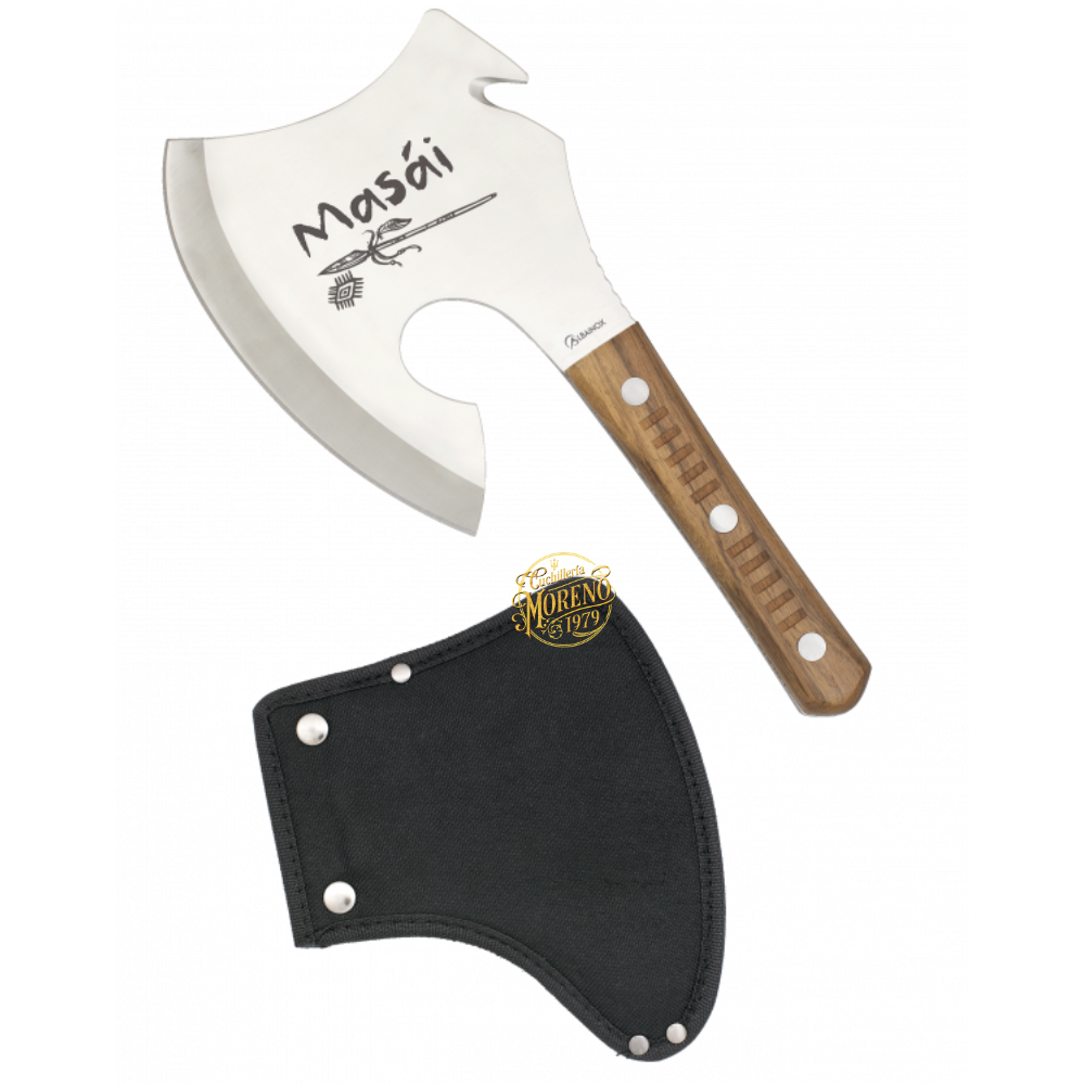 Con su estética marcada por el grabado de la palabra “Masái” y una lanza estilizada en la hoja, esta hacha es tanto una herramienta práctica como una pieza de colección para aquellos que aprecian la cultura y la calidad en sus equipos de campo.