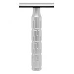 El bloqueo y apriete de la hoja de afeitar en el cabezal es sencillo e intuitivo, eliminando cualquier posibilidad de error durante el montaje. Además, su mango cuenta con una arandela de seguridad de nailon preinstalada, asegurando su estabilidad y evitando caídas.