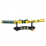 La vaina en color dorado aporta un toque de lujo y sofisticación, decorada con símbolos japoneses que refuerzan su carácter auténtico. Incluye una peana negra, que permite exhibirla de forma elegante y segura, resaltando sus detalles y haciendo que sea el centro de atención en cualquier espacio.