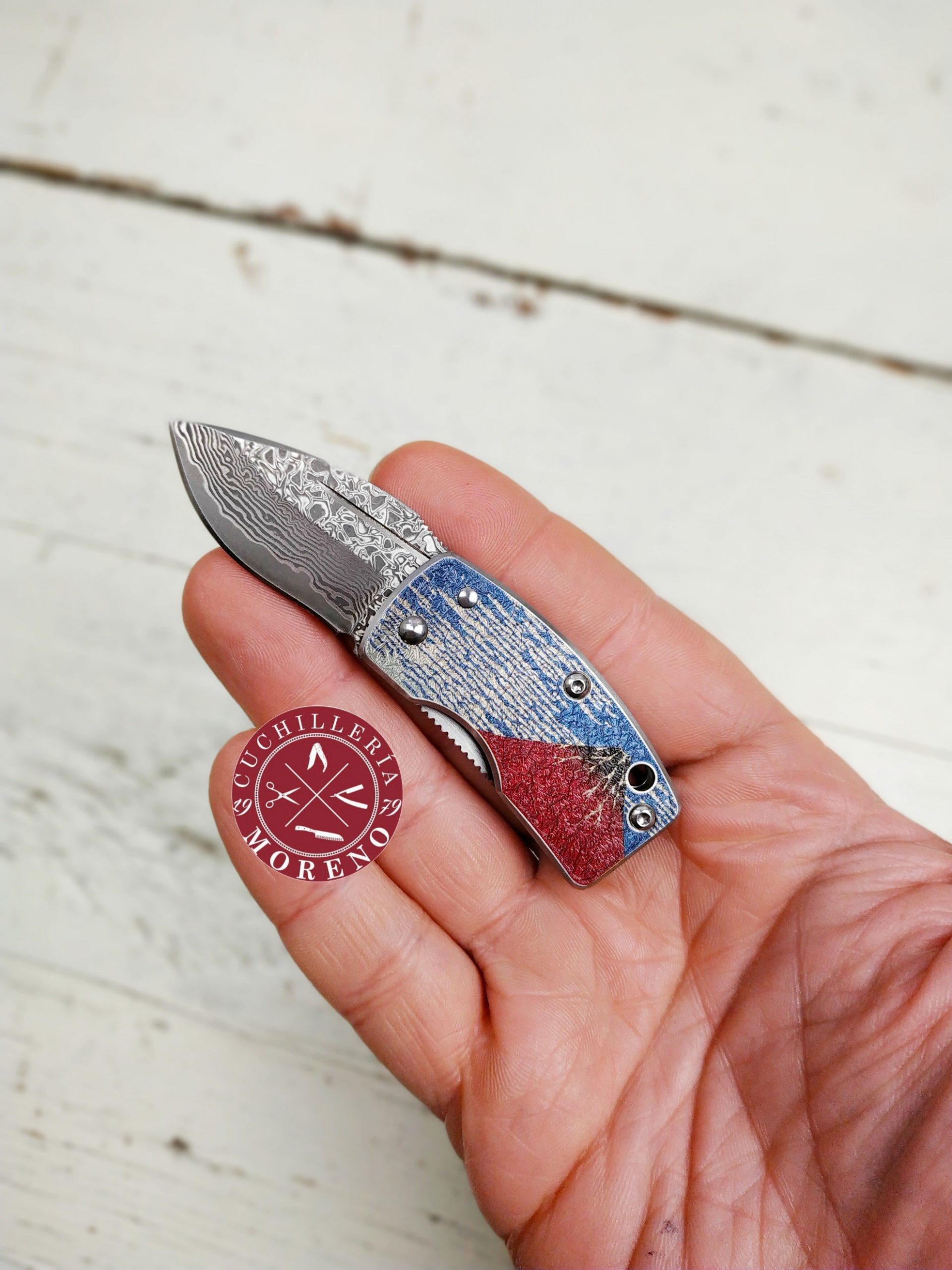- Hoja de acero damasco con núcleo VG10 de 4cm de largo