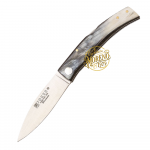 Su hoja de acero inoxidable 14C28N con acabado satinado proporciona gran retención de filo, resistencia a la corrosión y una corte limpio y duradero. El mango en asta de toro aporta carácter y autenticidad, convirtiendo cada pieza en un ejemplar único.