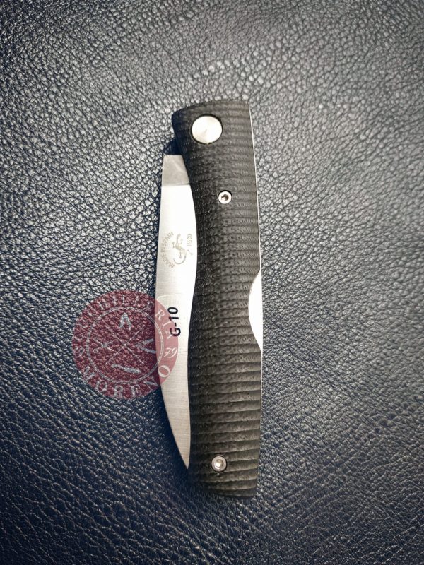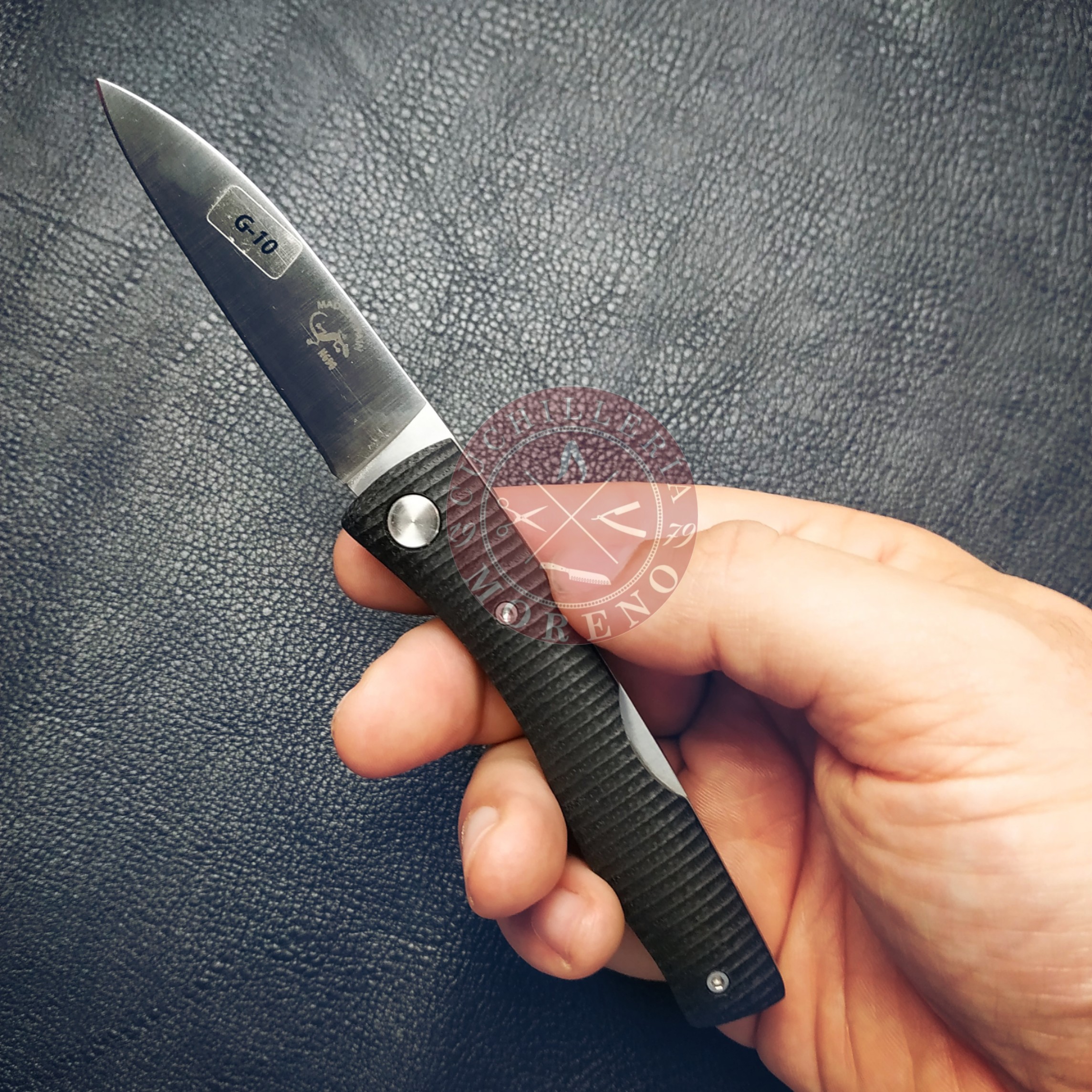 - Hoja de acero inoxidable N690 de 7,5cm y punta caída