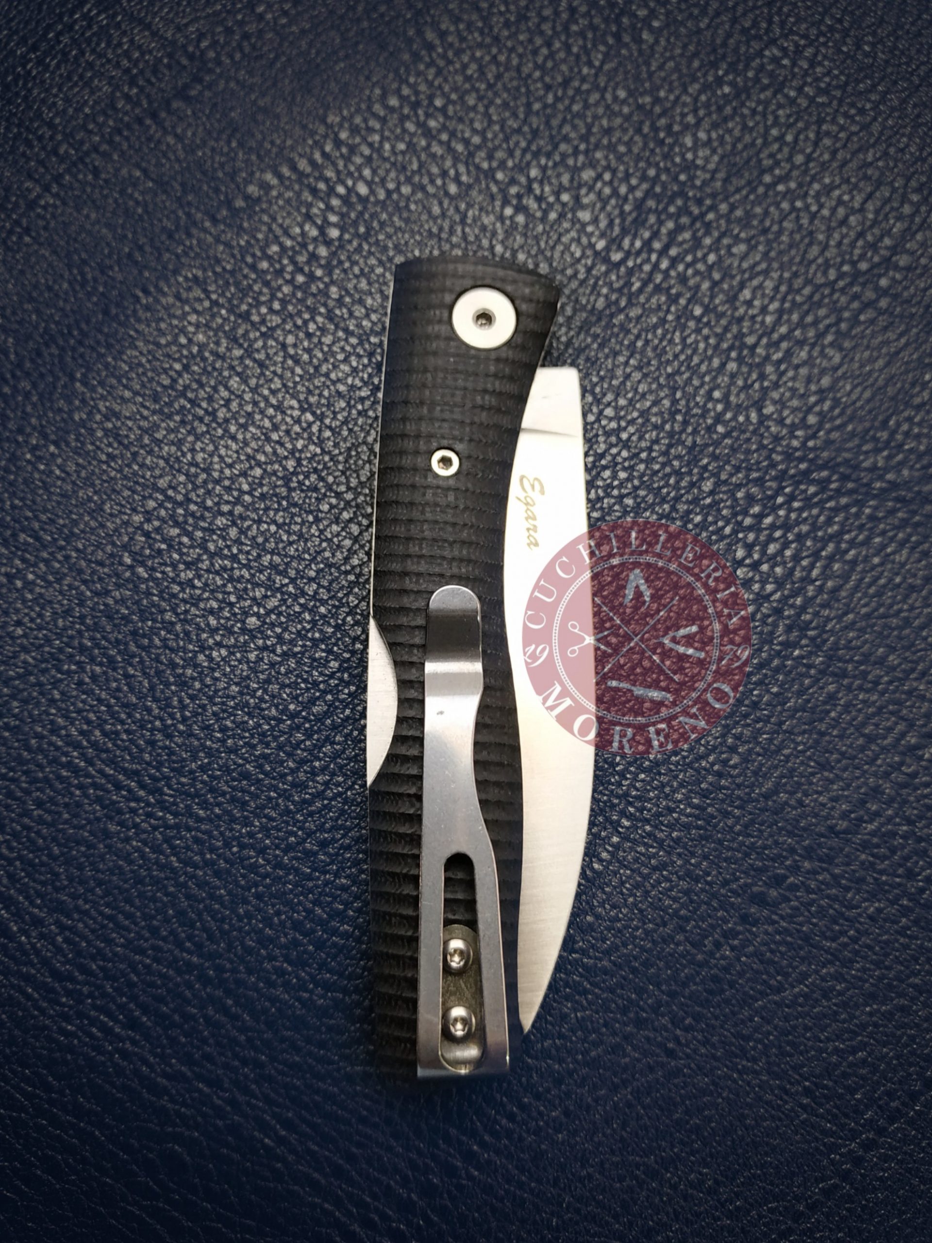 Tienen un seguro trasero o lockback, y la razón por la cual esta navaja tiene un corazón táctico: un clip de bolsillo muy discreto pero muy útil para llevarla.