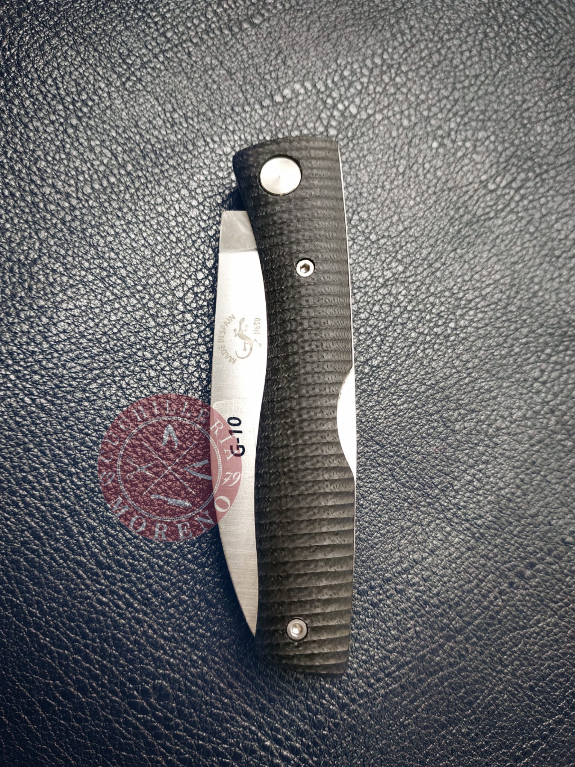 Esta navaja de Albacete fabricada a mano por Salamandra tiene un impresionante acero de alto rendimiento N690 con una hoja de punta caida de 7,5cm.