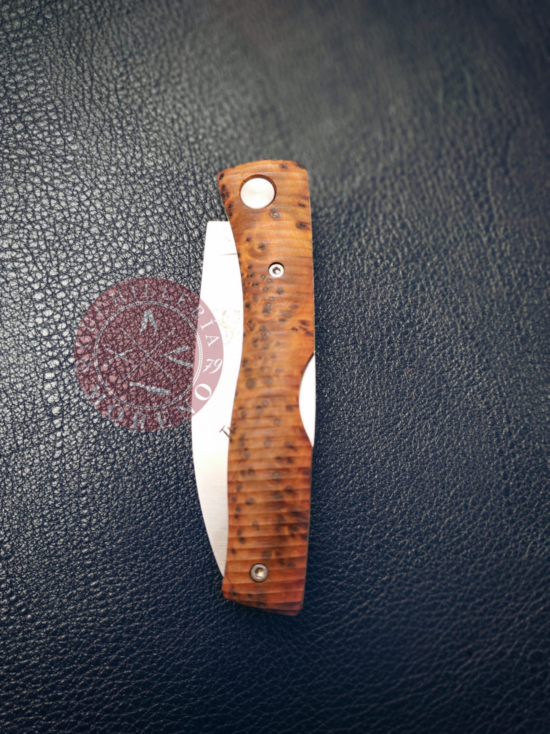 Esta navaja de Albacete fabricada a mano por Salamandra tiene un impresionante acero de alto rendimiento N690 con una hoja de punta caida de 7,5cm.