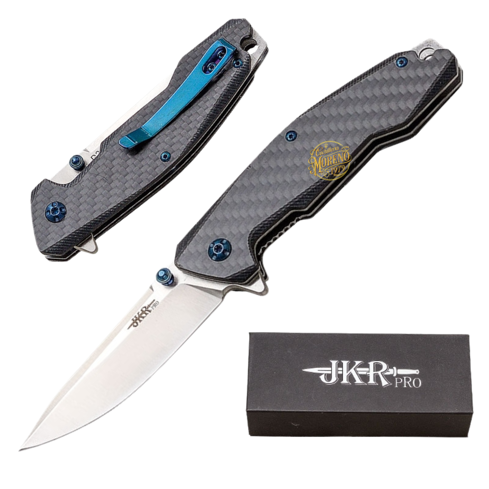 La Navaja Táctica JOKER JKR-PRO 10007 ofrece una hoja de acero D2 de 8 cm con acabado satinado, ideal para cortes precisos y duraderos. Su mango en fibra de carbono y G10 proporciona resistencia y un agarre firme. Incorpora una punta Spear Point que garantiza versatilidad en cortes y perforaciones. Su sistema de apertura por rodamientos permite un despliegue rápido y suave. Incluye clip, caja con cierre magnético y funda para mayor comodidad y seguridad.